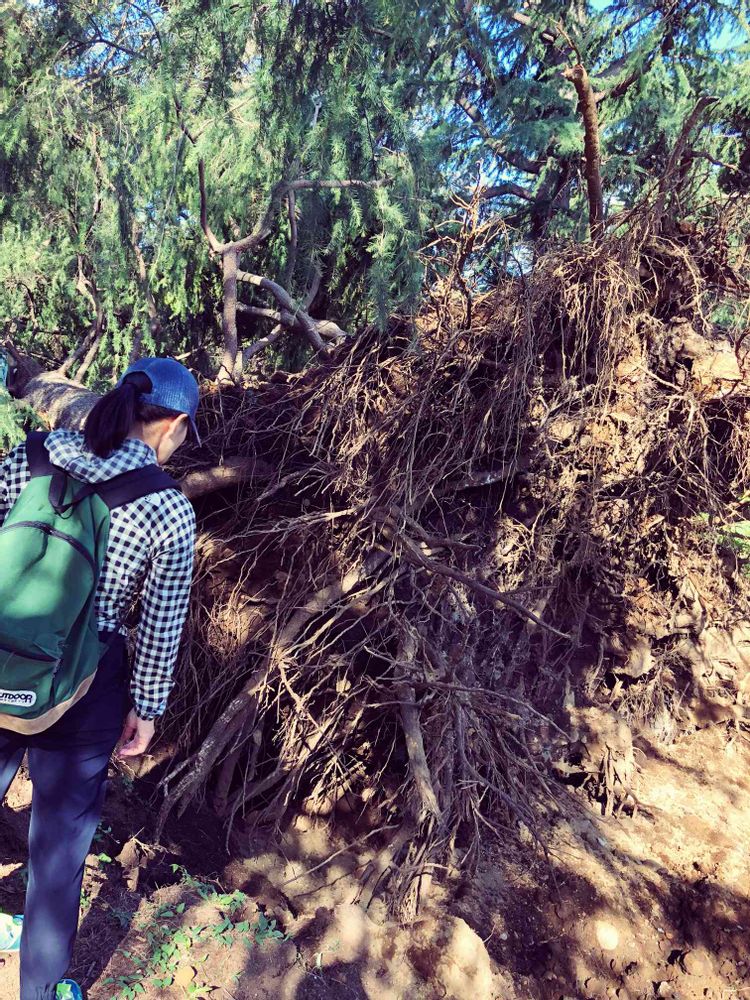 倒れた杉の大木。根の大きさも凄い!