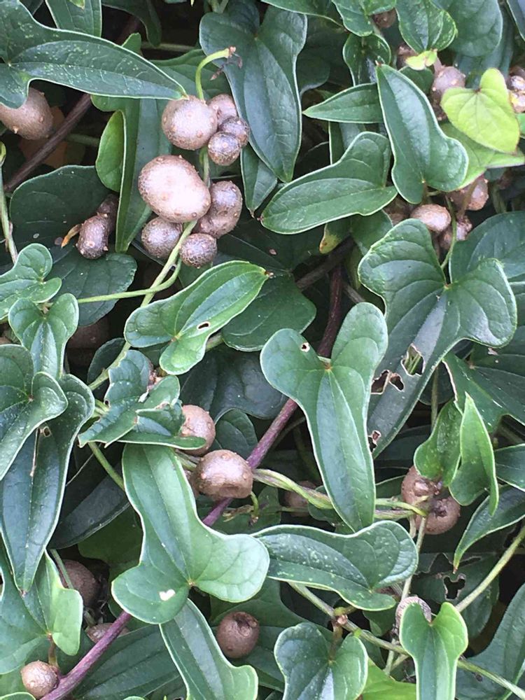 父の家庭菜園の片隅で、山芋のムカゴ発見〜〜(*´∇`*)