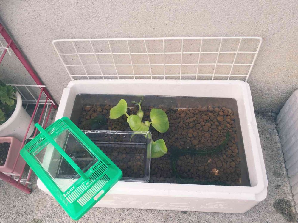 本当は素敵な睡蓮鉢でビオトープ😍を作りたいけど、超初心者🔰なのでまずは発泡スチロールでデビューです。