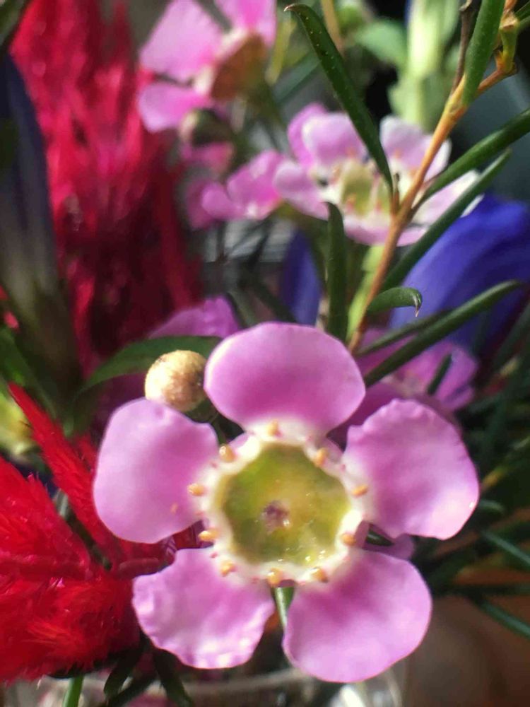 ワックスフラワーとリンドウ、ケイトウが入っていたので買っちゃいました💕