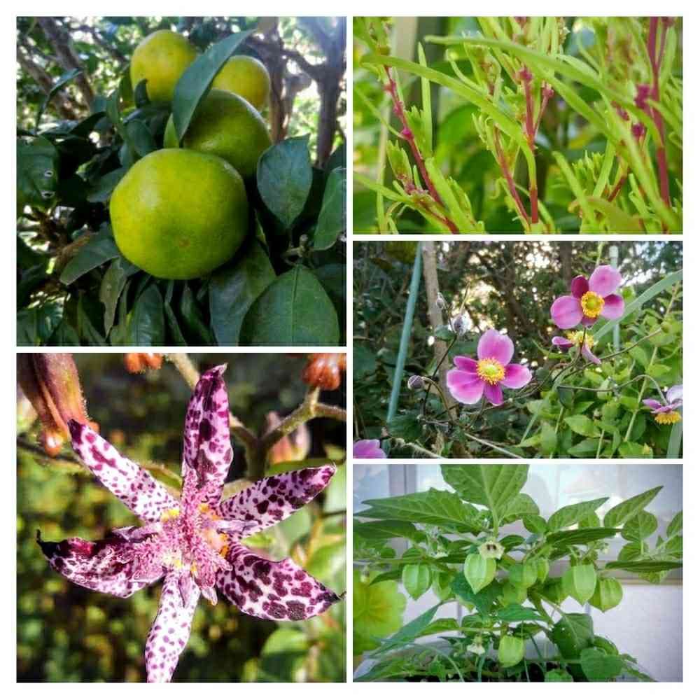 温州みかんが少し色づいて🍊… コキアにも小さな可愛い花が咲いている🌼