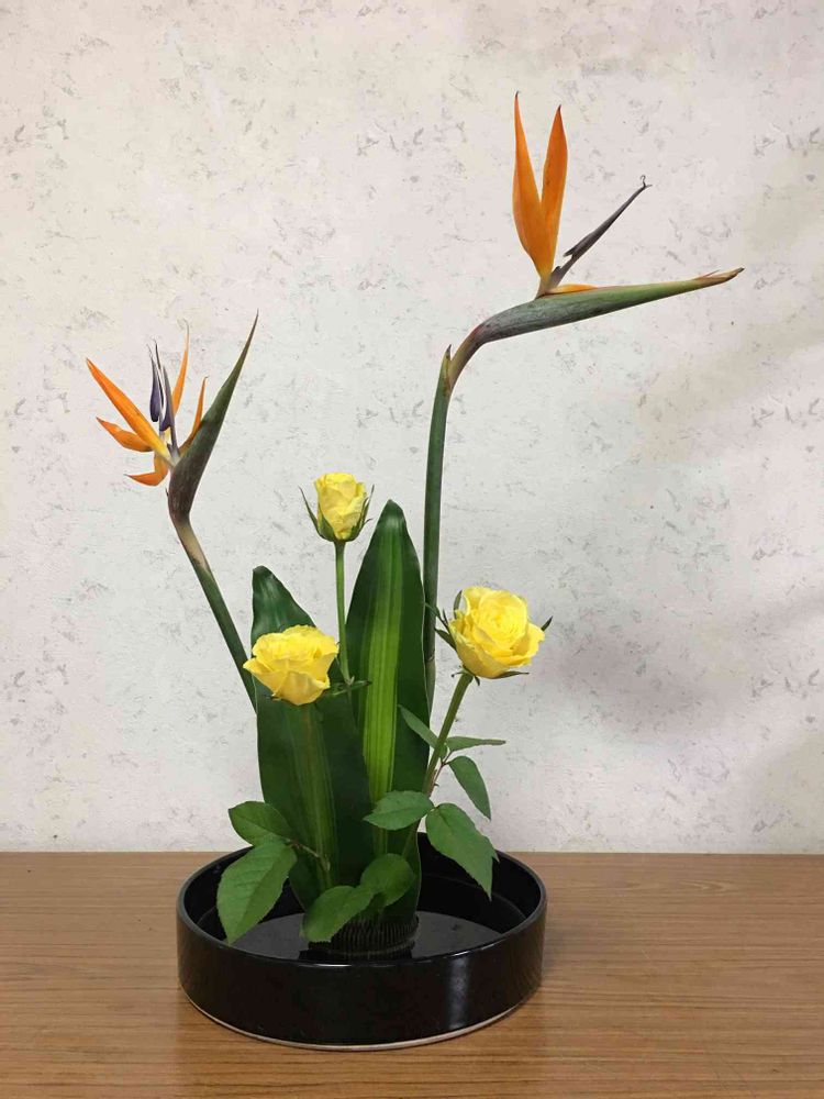 今回のお稽古🌼、未生流の基本形、色彩盛花、体用型B。