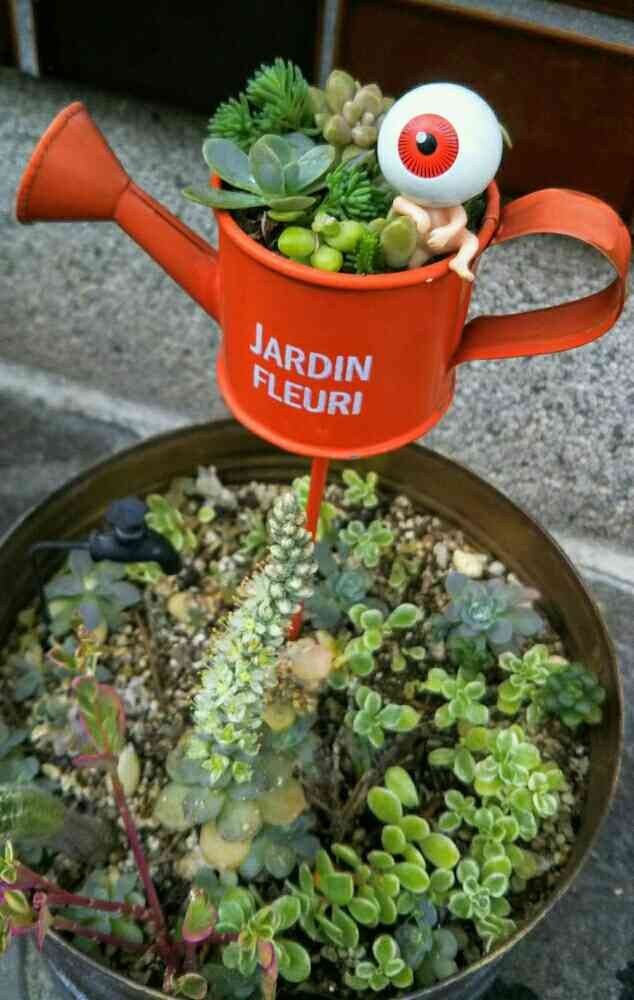 赤ジョウロ小さいから、少しの多肉で可愛くなるよ( *^艸^)笑♡