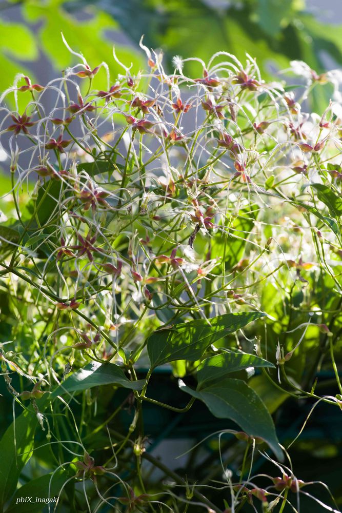 以前に白い花を沢山咲かせていたセンニンソウが,糸状の綿毛を沢山付けていました。クレマチスの自生種とのことですので,この綿毛がもっと開いてモシャモシャになるのか?それともこういう感じで飛んでいくのか?要観察です。