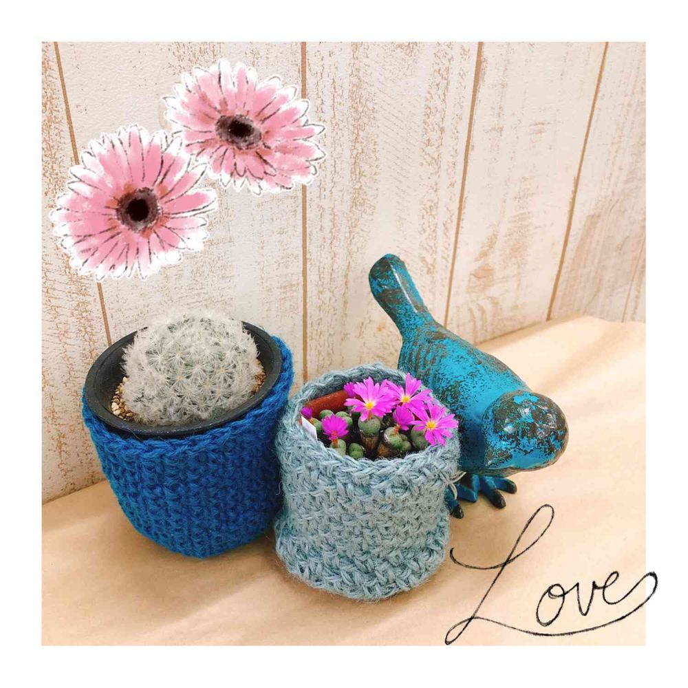 寒さが苦手な多肉を室内に入れる時用に、鉢カバーを編んでます♪