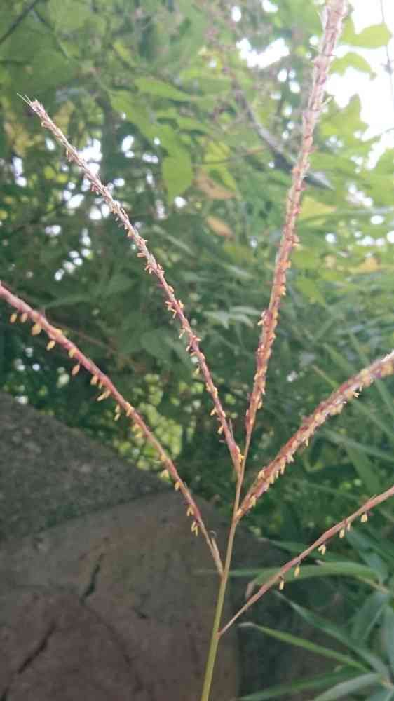 ススキの穂先に花がみられます。