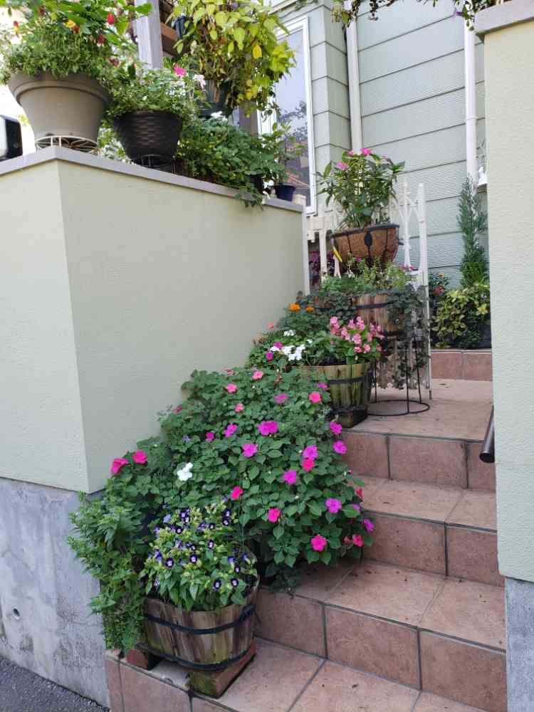 丸3日間空けて 玄関前階段の花達を 手入れする