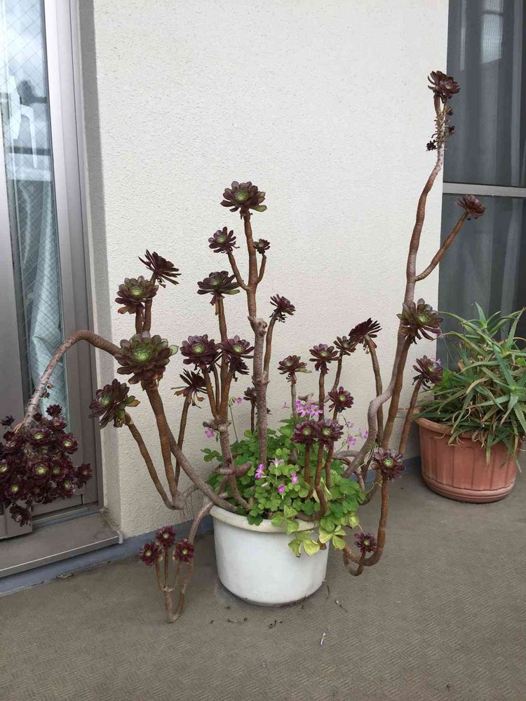 多肉植物の育て方を知らず、毎日水やりをし、夏には「暑かろう」と特にタップリ水をあげ続けて20年!こんな姿になっております。