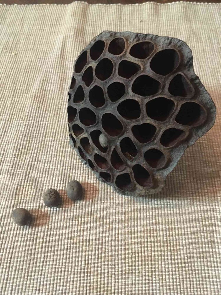 ハスの花柄。実は相当な珍奇植物では?上野公園で植木屋さんに、もらいました。
