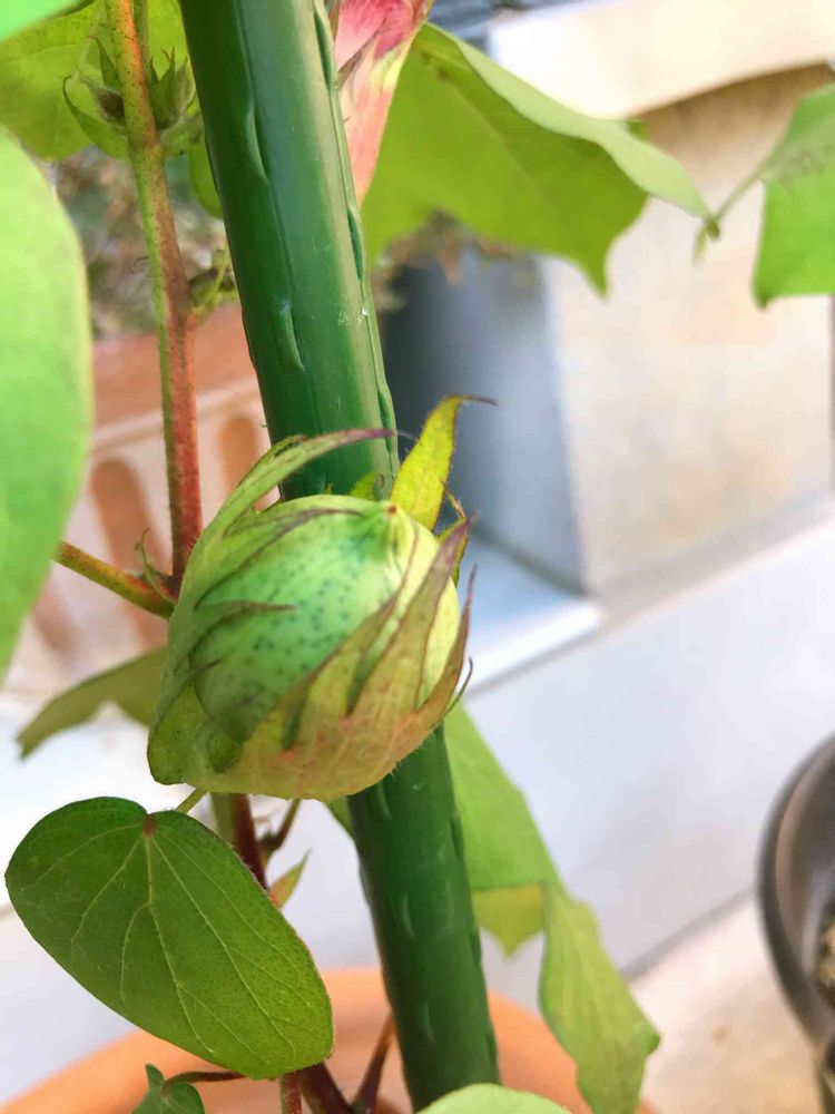ようやくコットンボールになりました❣現在、ボールになっているのは3個。しかも、全部違う枝に1個ずつという、ちょっと哀しい結果です。さてさて、どれくらい大きくなったら切り取れば良いのかサッパリ分かりません。育てた事がある方からのアドバイスお待ちしています😊