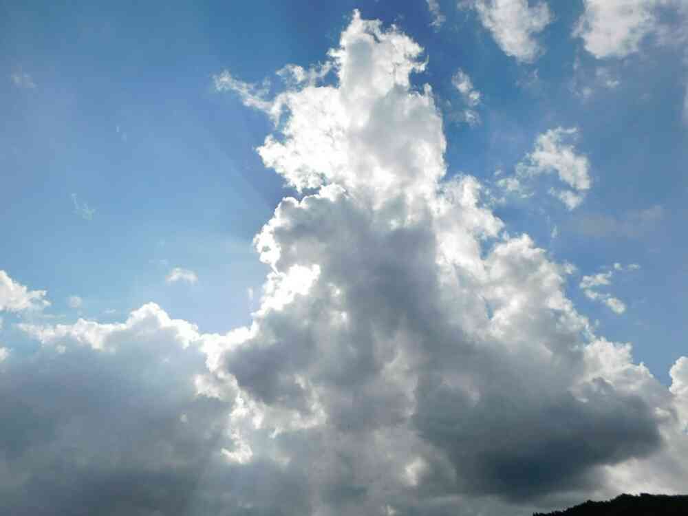 太陽はその怪獣雲の陰にあります。そこから漏れる太陽光が薄明光線。
