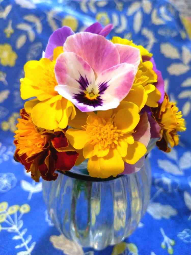 ビオラとマリーゴールドのミニブーケ🌼