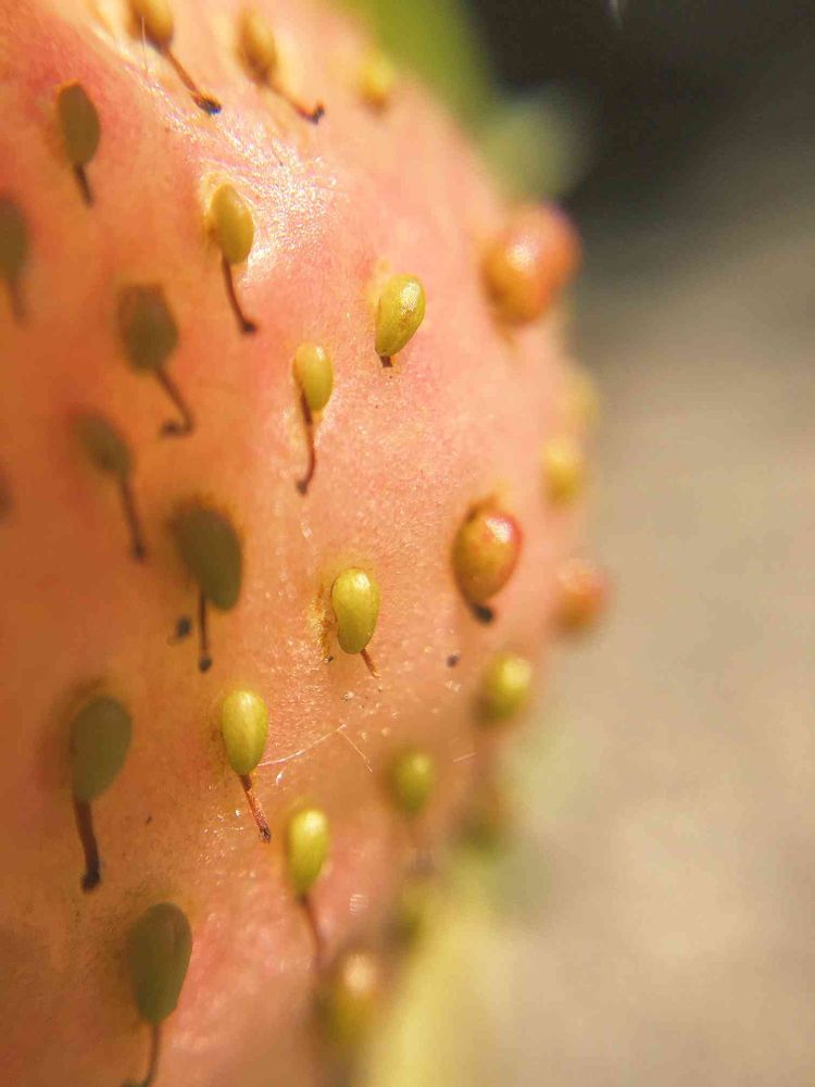 説明書きではプツプツが赤くなり、実がほんのりピンクになったら食べごろ、とのこと。実はほんのりきたけど、プツプツがあんまり赤くないのです…