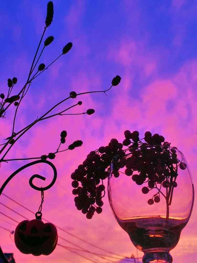 左下のシルエットはカボチャ🎃の飾りです。空の色がハロウィンカラーですよね。ありがとうございます😉💕