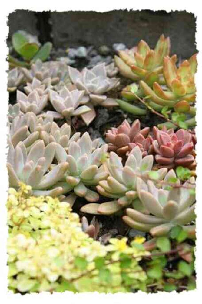 雨降り後の露地植え多肉♪プリプリ、キラキラ~(*´∇`*)このコたちは薔薇の木の下に植えているので夏の強い日差しの葉焼け対策もしています。
