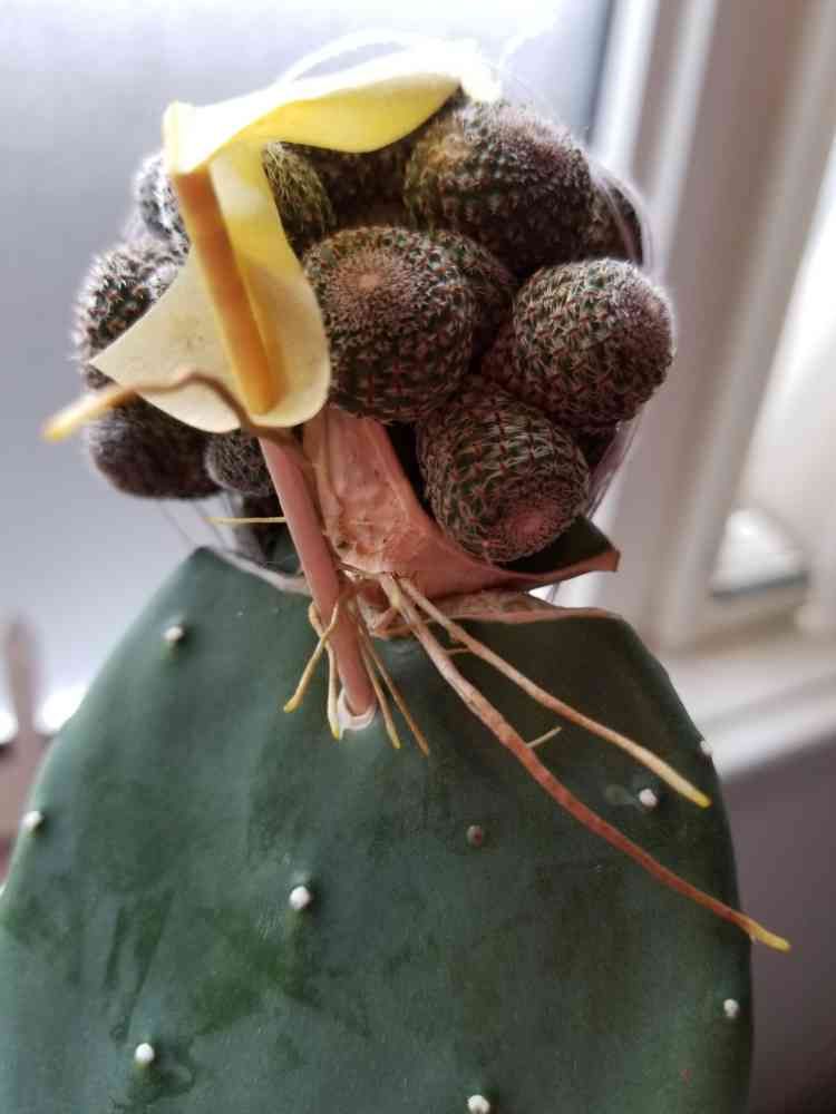 以前下の合体させてたサボテンが水やり過ぎて溶けたので切り離し、新たに他のサボテンと合体させてみたものの根っこが出てきました😂😂😂