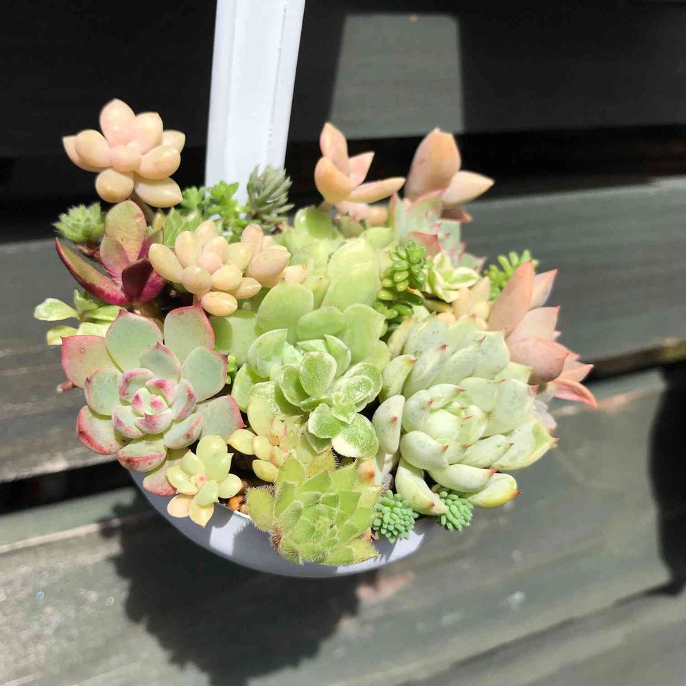 少しできた隙間とピョ〜ンと伸びたセダムをカットして整えてました😊