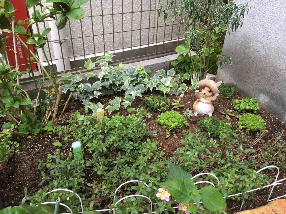 母のために春からせっせと作ってた小さなお庭(^-^)