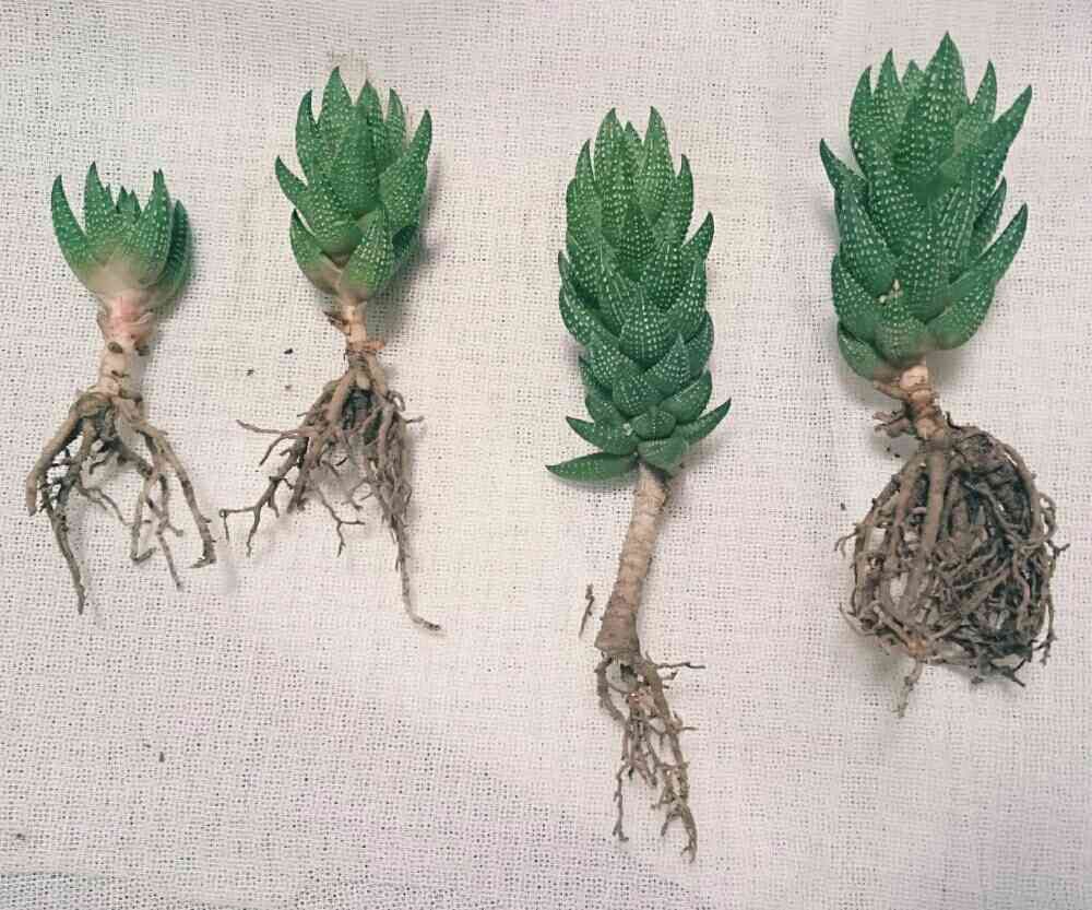 バラして植え替え予定。根っこのバラしかたが下手くそでアンバランス;;;;;一番左の子、根がピンク…根腐れでしょうか………