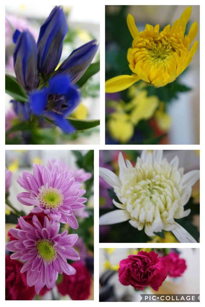 昨日母に供えた花々。久しぶりに和風⁈です。菊が綺麗な季節になりました。
