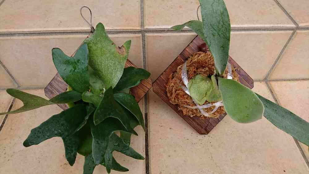 左は去年の10月にコメリで150円で買ったビフルです。剪定もしないので胞子葉も貯水葉もぐちゃぐちゃ😯