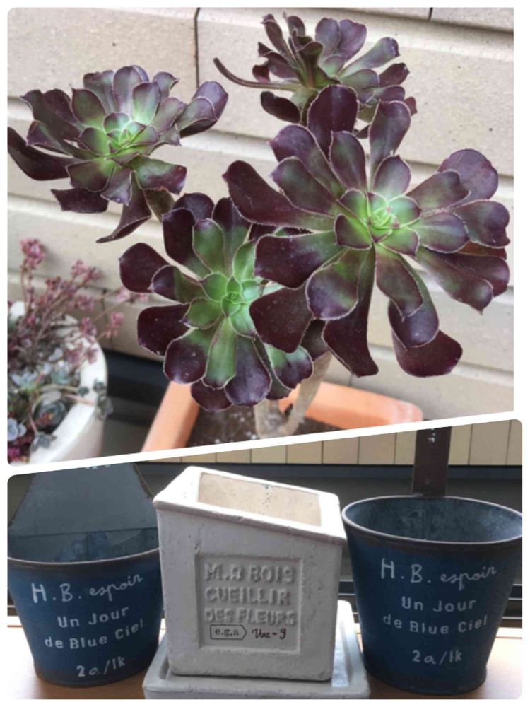 「多肉とみどりのマルシェ」でゲットしたブリキ缶と鉢。