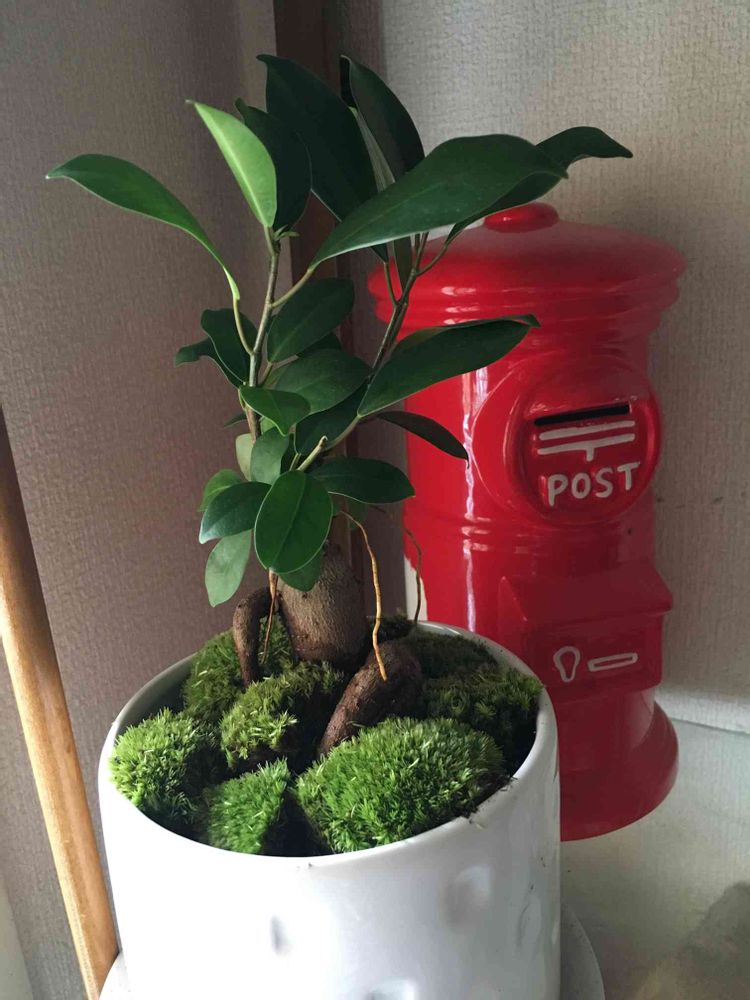 ガジュマル可愛いですよね。苔を買ってきて敷き詰めてみたんですけど、苔の色が悪くなってきたのて半分位減らしました。なかなか難しいです😅 でもガジュマルは元気です!
