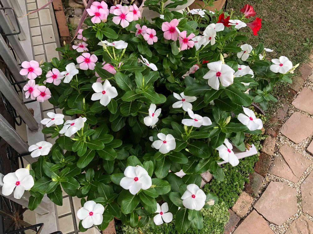 殺風景な庭に、花を添えてくれたニチニチソウ。涼しくなって来たけど!もう少し頑張ってね😊