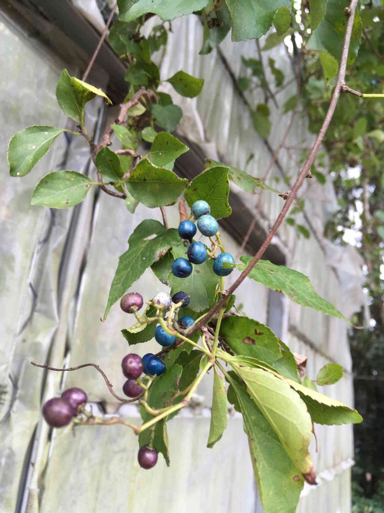 使わなくなったハウスの中から垂れ下がっているノブドウを発見!