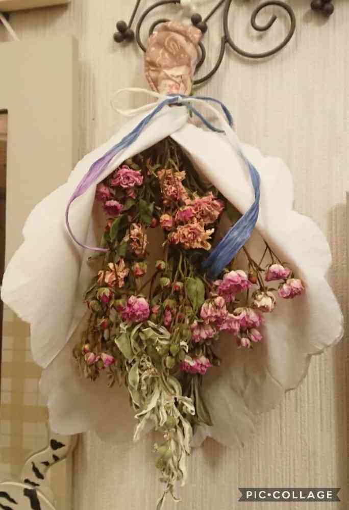 のりりんの森さんの玄関,ドライフラワースワッグ,ミニバラを楽しむの投稿画像
