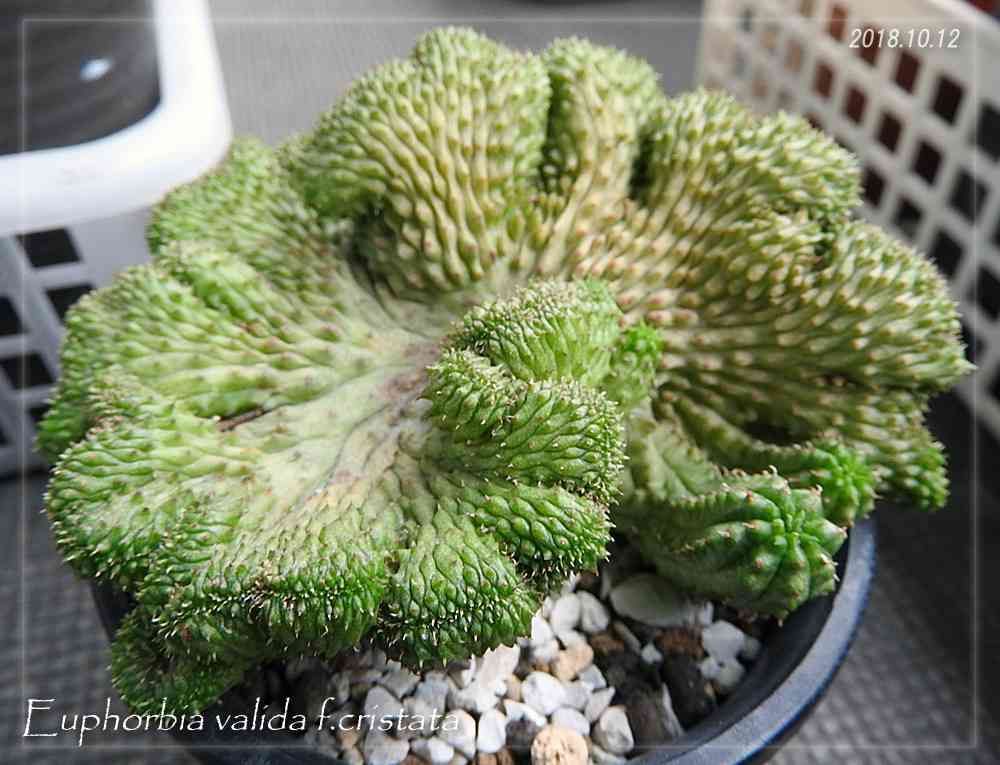 ユーフォルビア、バリダ綴化。これまでべろんと広がるように成長していたけど、徐々に立体化進行中。去年、今年と綴化株がいくつもやられてしまったので、これだけは元気でいて欲しい。