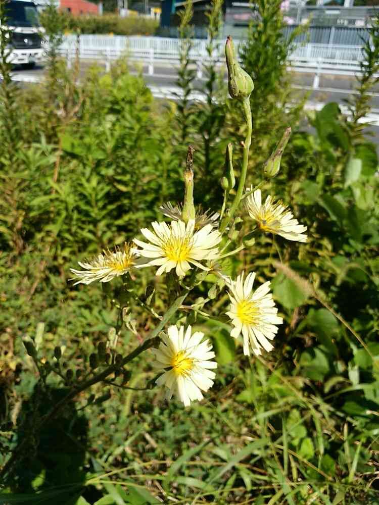 色の薄いタンポポ?と思って見たら、高さは40~50㎝あるし、葉っぱ🌿は舟形だし、今まで見たことない気がします。