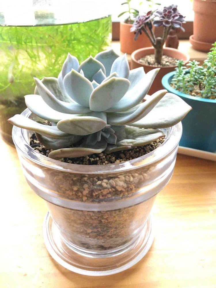 ガラス鉢にルンヨニー?さん植え替えました。根っこ張ってきたら見えるかな👀