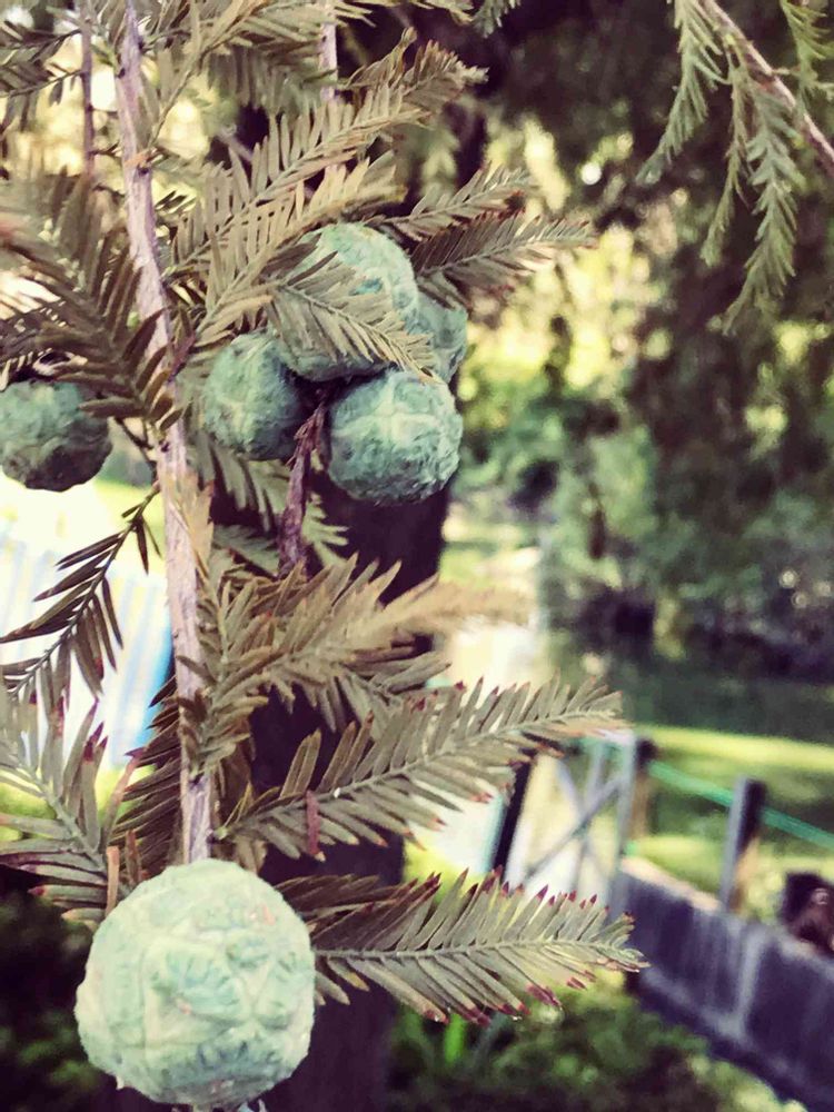 東武動物公園で。ラクウショウの実かなぁ❓メタセコイアと似てるけど ラクウショウの方かな❓似たのが多くてなかなか判断し難いです😢