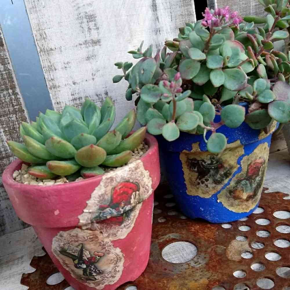 くにちゃん♡に貰ったリメ鉢にミセバヤさんとスカーレットさん❤❤❤