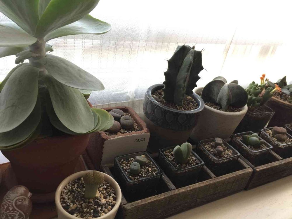小さなもので、安価な多肉と、数百円までの鉢を、少しずつ増やしていたら、出窓はもう一杯です。