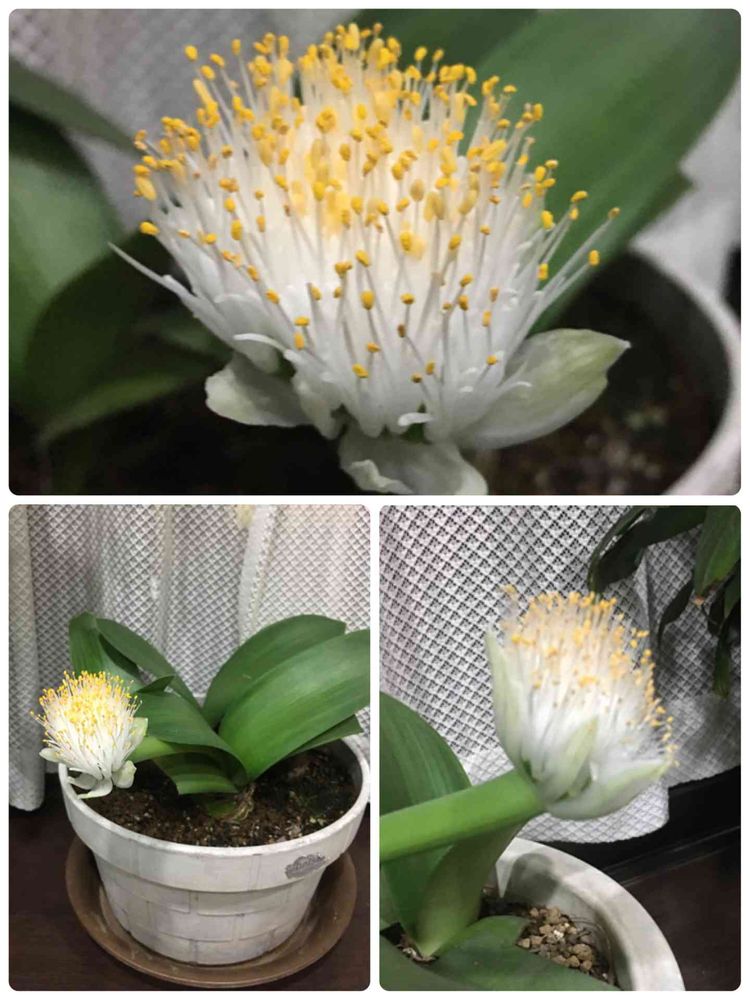 花びらはあまり目立たず、雄しべが束になって突出して刷毛のような形になります。雄しべは真っ白でその先端に黄色い葯が付きます🤗