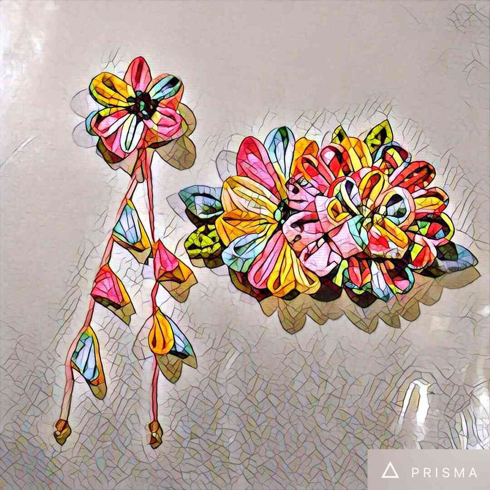 娘の七五三の髪飾りにつまみ細工で作ってみたのをPRISMAしてみた!
