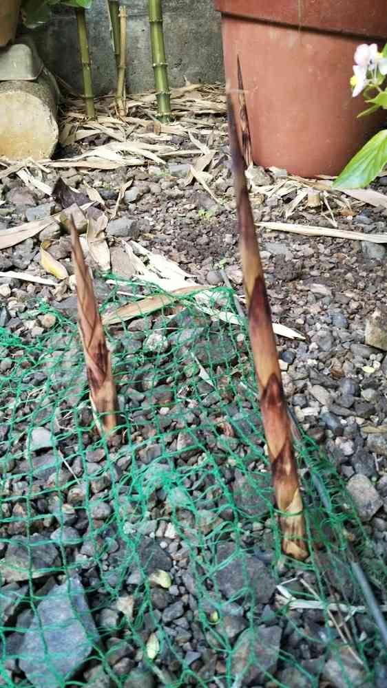 庭の片隅に植えてる四方竹の赤ちゃんが顔をだし始めました👍