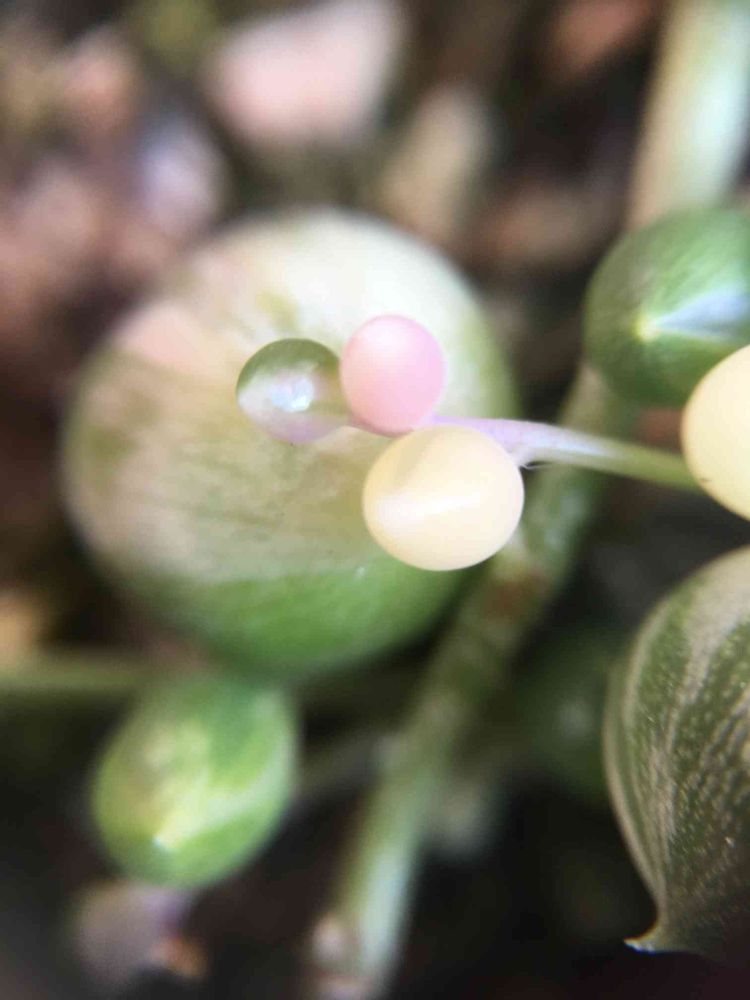 斑入りのグリーンネックレスの新芽がほんのりピンク😊💕