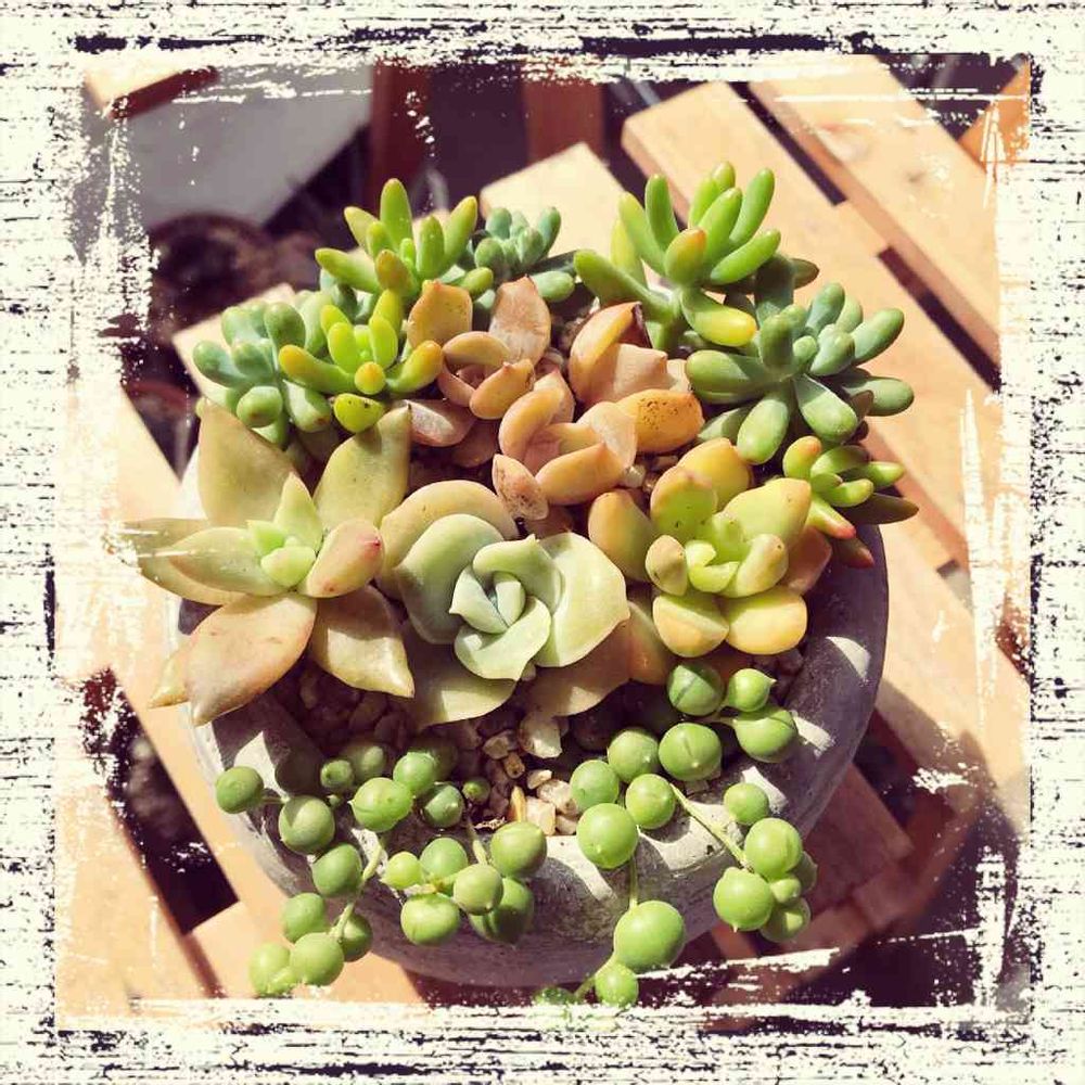 みんなぷっくりしていて可愛らしい寄せ植えですね🎵グリーンネックレスの粒が大きいですね🎵