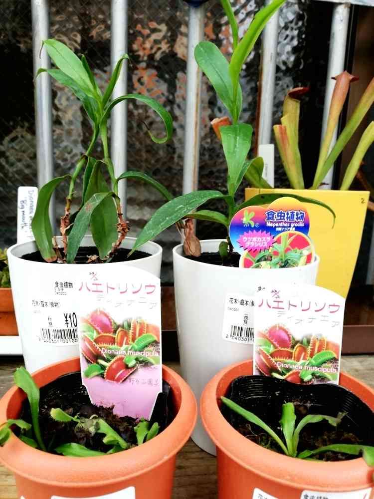 ホムセンで100円処分価格で置いてあったので拾ってきました。野々山はえとりと大彰園のネペン、グラシリス。 彼らにはすまないが砂利単用やベラポン単用等の植え替え実験台となります。(^_^;