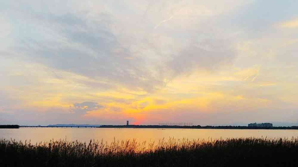 湖の夕景