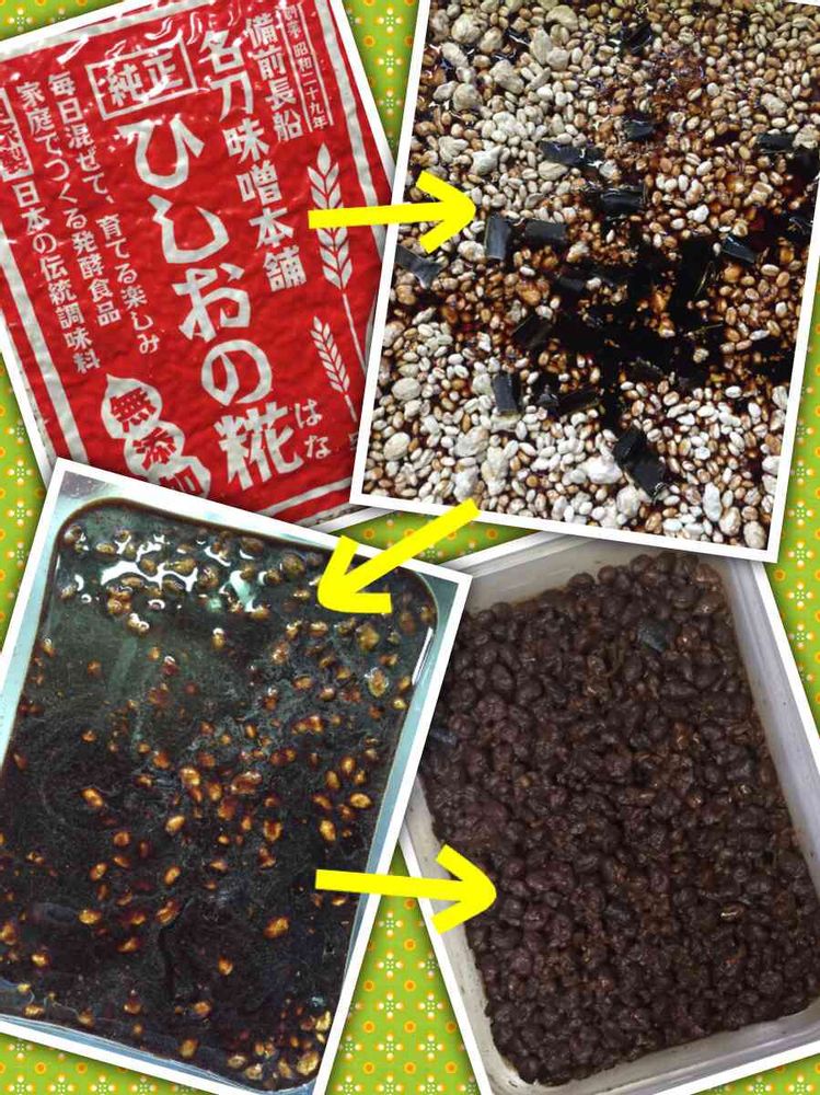 二、三年前から塩麹やしょうゆ麹は続けていますが、今年初めて教えてもらって作っているのが、この「醤(ひしお)」という調味料です。
