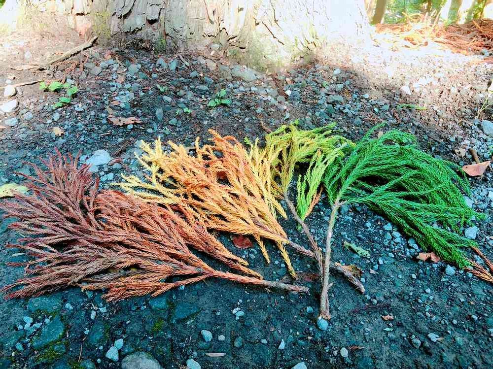 風で落ちた枝❓葉❓娘が集めて🤳写真を