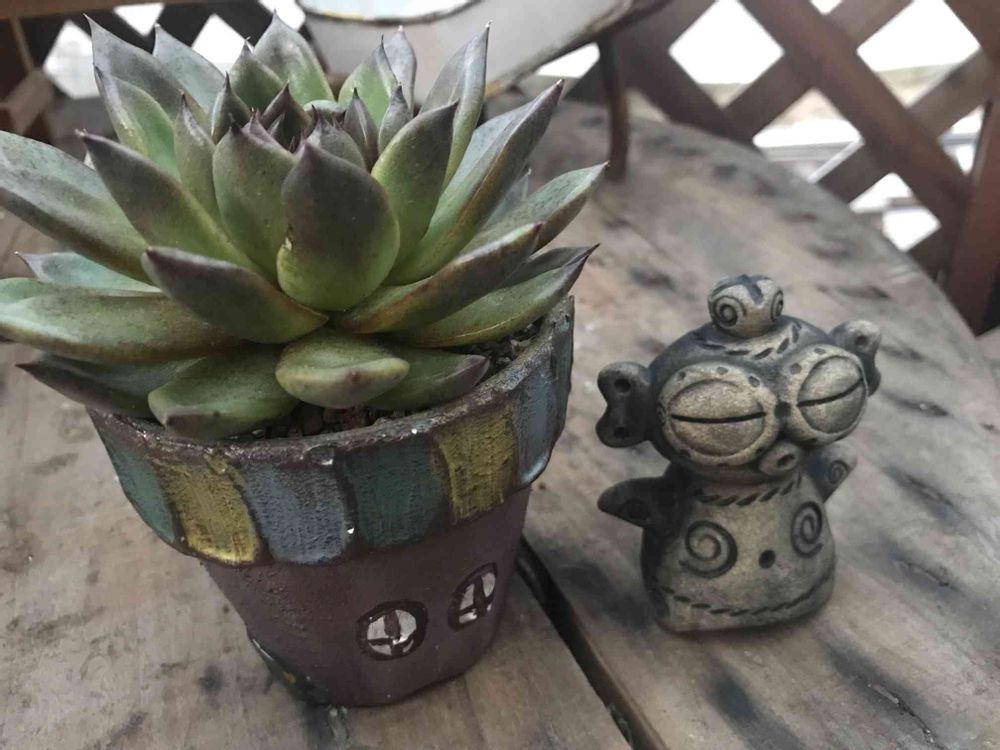 多肉のそばって、何かオブジェを置きたくなりますよね〜。