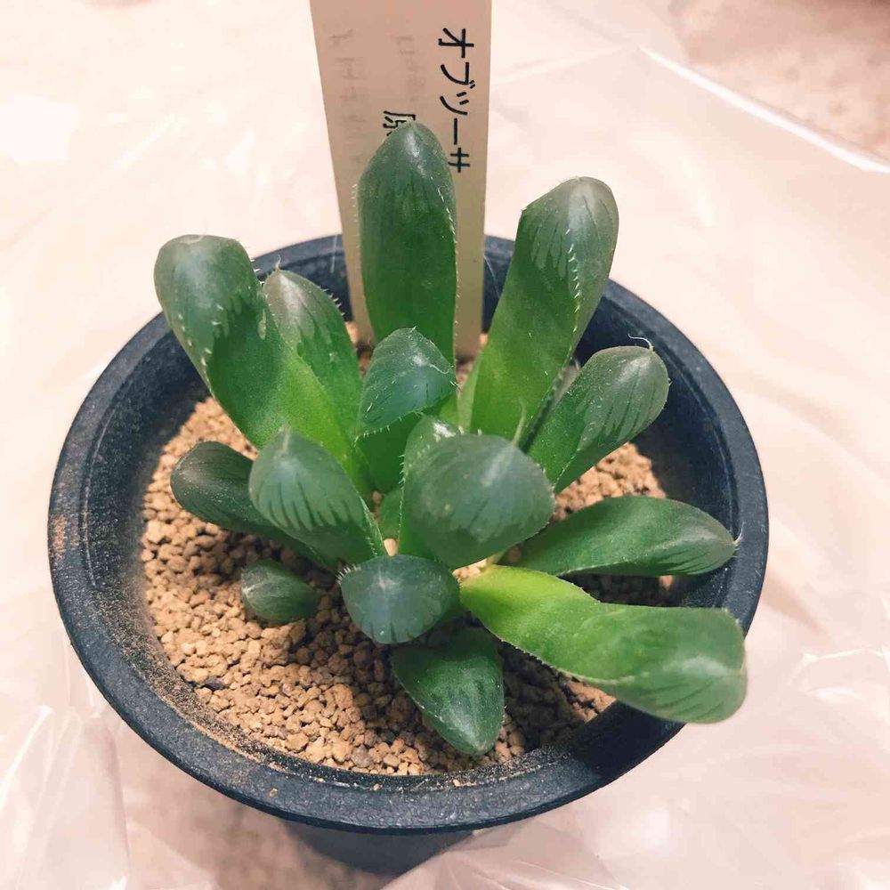 ハオルチアオブツーサで調べると、葉がキュッと密集してて、もっと肉厚?な感じなんですよ〜