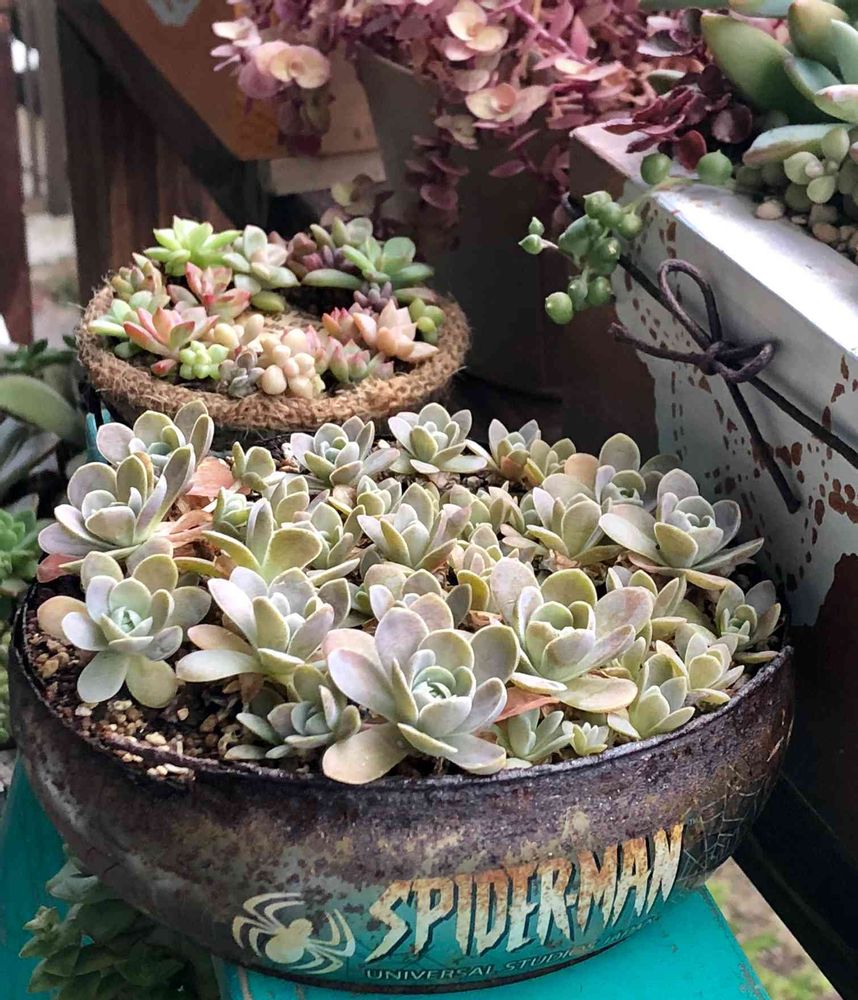 家に居る子持ち蓮華さん鉢の一つ💕スパイダーマンのサビ缶鉢♡夏に元気無くしてやっとここまで……