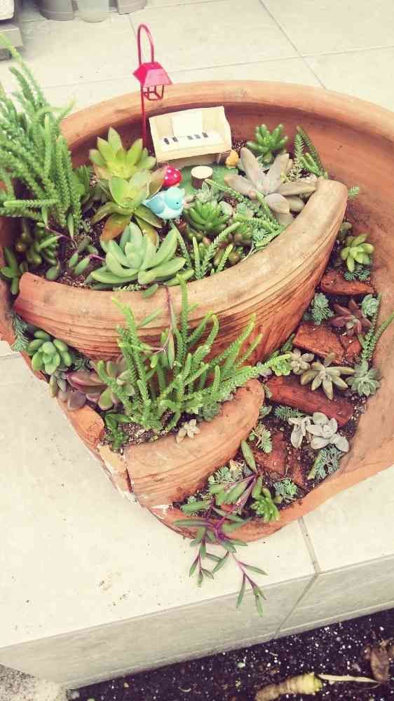先日の台風て割れた植木鉢で初めてのブロークンポットガーデンを作ってみました!!