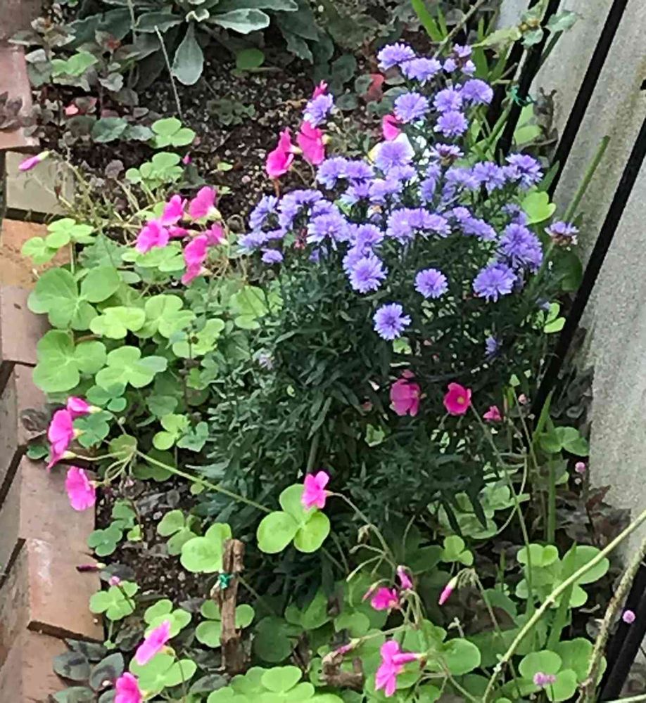 すぐ近くのピンクの花が陽が当たり、開きました。
